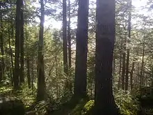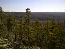 ![]() Typical softwood-forested hills and valleys of the Eastern Shore Granite Ridge. | |