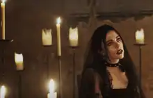 According to Heather Baron-Gracie (pictured), the unique look of the "Easy" music video was inspired by the "gothic medieval aesthetic and ... Tim Burton films".[8]