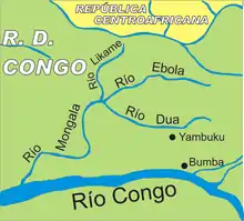 The Ebola River (/iˌboʊlə/ or /əˈboʊlə/),[1][2] also commonly known by its Ngbandi name Legbala,[3] is the headstream of the Mongala River, a tributary of the Congo River, in northern Democratic Republic of the Congo.[4] It is roughly 250 kilometers (160 mi) in length.