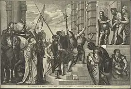 The Ecce Homo (lit.'Behold the Man') is a large oil painting by Titian, signed and dated 1543, which hangs in the Kunsthistorisches Museum in Vienna.[1] It is not to be confused with several smaller compositions by Titian.
