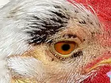 Echidnophaga gallinacea prefer to target host areas which are void of hair and fur, for chickens this is the eyes, comb and wattle.[1][2] If left, Echidnophaga gallinacea can cause irritation to the host due to feeding, this impact can also increase due to the number of Echidnophaga gallinacea feeding on a host.[1][2] The constant feeding can also cause ulcerations to the skin of the host as well as dermatitis, which can lead to excessive blood loss resulting in anaemia and death.[11][7] Echidnophaga gallinacea has also been found to carry disease causing agents such as rickettsia and bartonella.[7]