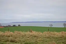 Eckernförde Bay (German: Eckernförder Bucht; Danish: Egernførde Fjord or Egernfjord) is a firth and a branch of the Bay of Kiel between the Danish Wahld peninsula in the south and the Schwansen peninsula in the north in the Baltic Sea off the lands of Schleswig-Holstein, Germany. The bay extends around 17 km (11 mi) deep into the land and is 10 km (6.2 mi) wide at its entrance where Booknis-Eck (municipality of Waabs) and Danish-Nienhof (municipality of Schwedeneck) mark the endpoints. The bay is up to 28 m (92 ft) deep. The border to the Kiel Fjord lies at the Bülk Lighthouse. The once forested Danish Wahld peninsula between Kiel Fjord and Eckernförde Bay constituted the borderland between the Saxons and the Danes until the Middle Ages. At the inner end of the bay lies the town of Eckernförde.[1]