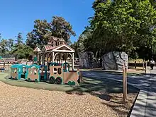 The remainder of the former Frontier Village site was purchased in 1987 for $4.5 million for what would become Edenvale Garden Park;[3]:93 the City of San Jose approved the master plan for the park in 1997.[12] The city park has a playground with structures themed for the amusement park's railroad.[13]