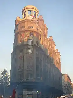 Edifici de Sindicats is monumental building in Barcelona. Built in 1925, initially occupied by the Caixa Mútua Popular ("People's Mutual Savings Bank"), later by the Francoist "vertical labor union" and finally by the democratic union organizations.