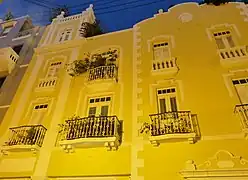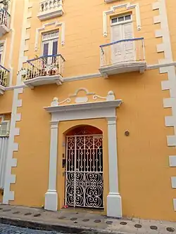 Edificio Patio Español (Spanish for 'building of the Spanish courtyard'), also known as La Filarmónica Building, is a mixed-use building located in the Old San Juan historic district of the city of San Juan, Puerto Rico.[1] It was designed in a Spanish Mission Revival-style by civil engineer Eduardo Fossas López and built in 1937 with the purpose of refilling an emptied lot of the old city with a structure that resembled and referenced the Spanish Colonial architecture around it. This emptied lot was formerly the site of a meeting house for a group called Sociedad La Filarmónica ('Society of the Philharmonic'), a scholarly club that was founded by Manuel de Elzaburú and Alejandro Tapia y Rivera with the intention of promoting cultural activities in the city of San Juan. The Patio Español building was added to the National Register of Historic Places in 2005.[2]