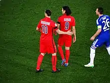 Edinson Roberto Cavani Gómez (Spanish pronunciation: [ˈeðinsoŋ kaˈβani]; born 14 February 1987) is a Uruguayan professional footballer who plays as a striker for Argentine Primera División club Boca Juniors. He is nicknamed El Matador ("The Killer") or Cazador ("Hunter") for his clinical finishing as well as his celebration, in which he makes a gesture resembling a bow and arrow. Cavani is considered one of the best strikers of his generation and one of Uruguay's greatest ever players.