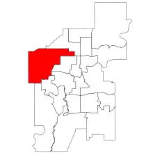 The district is located in western Edmonton, consisting of two residential areas separated by a large, mostly un-populated industrial area. In the northeast corner of the riding are the neighbourhoods of Wellington, Athlone and Calder, and in the south of the riding are the neighbourhoods of Terra Losa, La Perle, Belmead, Stewart Greens, Webber Greens, Suder Greens, Potter Greens, Breckenridge Greens, Rosenthal and Secord.