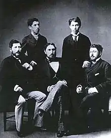 ![]() Edmund Gutmann (on the left seat) with his brothers Vilim, Isidor (both sitting), Ladislav and Alfred (both standing). | |