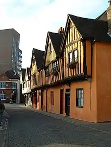 In 1567 Withypoll confronted the Town Bailiffs[30] over their attendance at the "Holy Trinity Fair" (granted to the Priory by Henry II) held annually in Tuddenham Road beside Christchurch. He objected that it had been customary to lodge the town's ceremonial maces with the Priory for the fair's duration, which in default of their having done, he advised them not to attend. The Councilmen instructed the Bailiffs (as Clerks of the Market, and Justices of the Peace) to disregard his message, and Withypoll blocked various highways and opposed their entry. He brought a suit in Star Chamber, which the Bailiffs and Commonalty resolved to defend and oppose fully, at the town's expense. Loans were sought from the Portmen, councilmen and burgesses, and scot and lot was imposed upon the householders to raise £200 for the town's debts and for this suit, upon pain of distraint, seizure of property, disfranchisement and imprisonment for default of payment.[31][32]