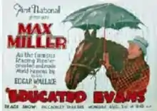Educated Evans is a 1936 British comedy film, directed by William Beaudine and starring Max Miller. The film, set in the world of horse racing, was based on the 1924 novel of the same name by the prolific Edgar Wallace. It is one of five films starring Miller which is not known to be extant, and is classed as "missing, believed lost". A sequel Thank Evans was released in 1938; it too is missing. The story was later adapted into a BBC television series Educated Evans in 1957.