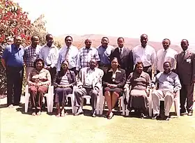 Ntalami (seated first from right) at a retreat with leading stock exchange and capital markets officials. Windsor Golf and Country Club, Nairobi, Kenya.