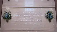 Archbishop Hanna retired March 2, 1935, due to ill health and advancing age. Pope Pius XI appointed Hanna the titular archbishop of Gortyna.[10] He was succeeded as archbishop of San Francisco by John Joseph Mitty. Hanna moved to Rome after his retirement, where he died on July 10, 1944.[11] Hanna's body was returned to San Francisco in 1947. He is buried in the Archbishop's Crypt at Holy Cross Cemetery in Colma, California.