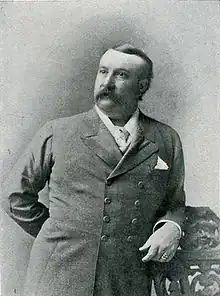 In March 1890 his 'Preislied' from Meistersinger was the key attraction at Crystal Palace.[14] In July 1890, Lloyd 'sang well', but tended to 'jingoism', 'genteel piety' and 'sentimentality' in the Lohengrin Act 3 under Richter, but 'he was not Lohengrin.'[15] In March 1891 his Tannhäuser in a concert performance of the last act was 'beyond cavil'.[16] At the Richter concert of June 1891 he sang Tannhäuser's Rome Narrative and the Siegfried forging music 'very tunefully and smoothly, without, however, for a moment relinquishing his original character as Mr Edward Lloyd.'[17] In the Lohengrin and Tannhäuser third acts repeated at Queen's Hall in May 1894, Lloyd was 'playing a little to the gallery by a style of declamation not exactly classic, though sufficiently sincere and effective.'