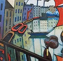 By the end of the 1920s Wadsworth was successfully exhibiting in Paris and London. His work was reproduced in European avant-garde arts magazines[29] and he could be seen as 'a leading British modernist artist'.[30]