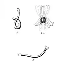 Illustrations of E. neozelanica by Farquhar that accompanied its 1898 description. The tentacle-fringed capitulum and three-part body can be clearly seen.