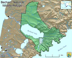 - 1 2 Becharof National Wildlife Refuge: draft wilderness review amendment and supplemental environmental impact statement for the wilderness proposal of the final Becharof comprehensive conservation plan/environmental impact statement/wilderness review. U.S. Fish and Wildlife Service. 1988. pp. 3, 42–.