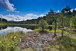 The surrounding landscape conservation area is located in the municipal areas of Seeboden, Spittal and Ferndorf. The shaded southern shore of Lake Millstatt is largely in its natural state, as opposed to the densely settled northern shore, and virtually uninhabited. The historic route from Millstatt Abbey into the Drava Valley - Lake Millstatt was thereby crossed by boat - went some distance to the east past the Egelsee. Remnants of the old flagged stone pathway are still visible.