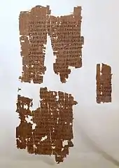 - ↑ Zelyck (2019). The Egerton gospel (Egerton papyrus 2 + Papyrus Köln VI 255) : introduction, critical edition, and commentary. Brill. pp. 30–33. ISBN 9789004409842.