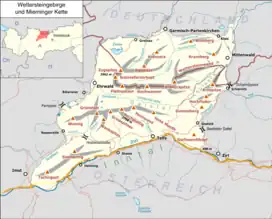 ![]() The Sonnenspitze from the Ehrwald Basin to the north | |