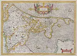 A map of Holland in 1606 by Gerardus Mercator. It featured many lakes, especially in the northern region of the province.[note 6]