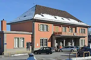 Einsiedeln is a railway station in the Swiss canton of Schwyz and municipality of Einsiedeln. The station is the terminus of the Wädenswil to Einsiedeln railway line, which is owned by the Südostbahn. The station is served by Zurich S-Bahn services S13, to Wädenswil, and S40, to Rapperswil.[1][2][3]