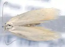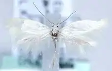The wingspan is 13–18.5 mm (0.51–0.73 in). The forewing ground colour varies from snow white to yellowish white. The hindwings vary from yellowish white to grey.[1]
