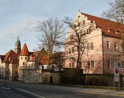 The Electoral Palace (German: Kurfürstliches Schloss) is a Schloss in Amberg. After several large fires in the 17th century, only the south wing (Neues Schloss) remains from the once three-winged palace. It is connected through the fortified bridge Stadtbrille, to the Zeughaus (armory) across the Vils river.[1]
