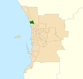 ![]() Location of Joondalup (dark green) in the Perth metropolitan area | |