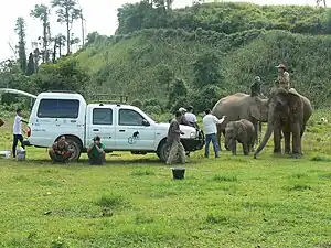 ElefantAsia created the Mobile Veterinary Unit to provide 'house calls' to domesticated elephants working in remote areas. Operating in the Xaignabouli province of Laos, the Mobile Veterinary Unit is especially designed to dispense medical care to domesticated elephants.[5] ElefantAsia's veterinary team visits logging sites, tourist camps and villages where elephants are employed to ensure they are receiving adequate healthcare. This is necessary as vaccinations are not available, medical treatment is rare and medication dosages are hardly ever adhered to.[6]