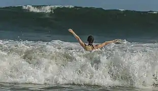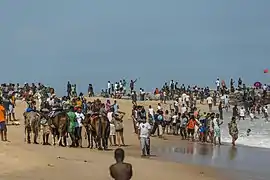 Elegushi Beach is a private beach located at Lekki, Lagos state, southwest Nigeria.[1] The beach is owned by the Elegushi royal family in Lekki, Lagos state.[2][3] Elegushi private beach is seen as one of the best beaches in Lagos and Nigeria at large. The beach entertains close to 40,000 guests every week with Sundays being the best day on the beach. Over half of all guests that are entertained on the beach weekly visit on Sundays. Their gate pass is at 2000 naira flat rate but can be discounted if you have like a group.[4] Their official IG handle can be used to reach them.