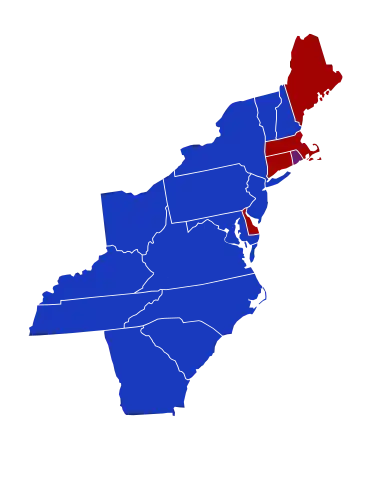 ![]() Senators' party membership by state at the opening of the 11th Congress in March 1809.