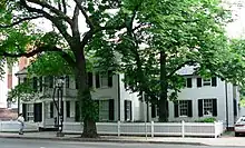 Elihu Club is housed in a three-story white clapboard house built between 1762 and 1776 at 175 Elm Street.[14][15] This house is the oldest of all of Yale's secret society buildings, and purportedly one of the oldest original structures in the United States still in regular use. Its brick basement is older still, constructed in the early 17th century, and later frequented by colonists sympathetic to the English cause when it became known as the Tory Tavern, a central locale of the Revolutionary War.[27] In 1781, the town of New Haven confiscated the building from its Loyalist owner, Nicholas Callahan, for his activities.[27][15]