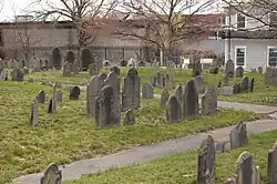 Eliot Burying Ground (or ""Eustis Street Burying Ground" or "First Burying Ground in Roxbury") is a historic seventeenth-century graveyard at Eustis and Washington Streets in the Roxbury neighborhood of Boston, Massachusetts. It occupies a roughly triangular lot of 0.8 acres (0.32 ha).
