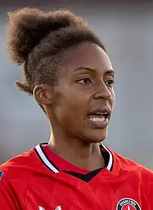 Elisha N'Dow (born 13 October 1996) is an English professional footballer who plays as a centre back for Charlton Athletic. She has represented Aston Villa on more than 100 occasions and served as their captain.[1]