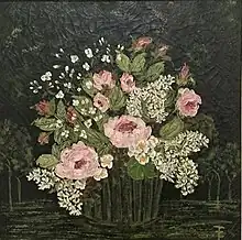 The San Francisco Chronicle's late art critic Alfred Frankenstein reviewed her showing at the Pomeroy Gallery in 1968, and said Charleston had a "wonderful eye" for flowers -- "totally charming, decorative and delectable."[2] Most of her works were impressionist oil paintings of flowers and the French countryside. Her works are available widely today, and have been shown in numerous museums and galleries in the US, Brussels, and Paris,[2][4] including Hammer Galleries in NY (at least four one-woman exhibitions at Armand Hammer's famed galleries),[5][6] Frank H. Boos Gallery in Bloomfield MI,[7] Conacher Galleries in San Francisco,[8] Salon des Femmes Peintres in Paris in 1974,[5][9] the Salon exhibition at Société des Artistes Français[9] in 1973,[5] the US Embassy in Brussels,[5] and at the Nationale des Beaux Arts Exposition du Tricentenaire[10] in 1973.[5]