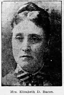 - ↑ "Elizabeth D. Bacon". The Waterbury Democrat. 1895-11-06. p. 7. Retrieved 2023-01-19 – via Newspapers.com.