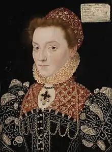 In 1553, she and her second husband supported the plot to place Lady Jane Grey upon the throne in lieu of Princess Mary Tudor; Lady Jane also had been a member of Catherine Parr's household, so it is possible that Lady Elizabeth had developed a fondness for the young girl, which may have prompted her to back Jane's claim. When the plot failed, Lady Elizabeth and her husband managed to regain the trust of Princess Mary, who subsequently became queen. Shortly after the ascension of Queen Elizabeth I to the throne, following Queen Mary's death in 1558, Lady Elizabeth was at court as one of the Queen's ladies-in-waiting.[5] Elizabeth was one of those who, in 1561, had tried to warn Lady Catherine Grey to confess her clandestine marriage to Edward Seymour to the Queen before the latter discovered the truth from other people.[6] That same year, Lady Elizabeth fell briefly into disfavour with the Queen and was accused of "frailty" and "forgetfulness of duty". These charges were made by the Archbishop of Canterbury Matthew Parker who also declared that she should be "chastised in Bridewell" for her "offences".[7] Tudor historian David Starkey concludes that Archbishop Parker considered Lady Elizabeth to have been a "strumpet".[8]