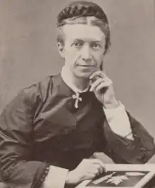 She never independently practiced medicine, but her children often consulted with her about their patients.[15] She traveled to Mexico with her son to a conference for the Pan-American Medical Congress. Her travel account in Mexico was published by Kane's newspaper.[16] She remained politically active throughout her life. She continued to develop her skills and talents, botanical drawing, wood carving, microscopic picturing, and photography. She spoke fluent French, had fair skills in Swedish and Italian, and had learned German earlier in her life.[17] She never lost her passion for learning; she was studying Spanish before she died on May 25, 1909, at the age of 73.[18]