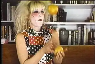 In the early 1980s, Sher turned to the more populist (and affordable) video format, often packaging works together in a fast-paced program called I. V. Magazine.[30][1][31] The San Francisco Examiner and others noted the subversive and eclectic quality of its pop-culture vignettes, commercial parodies, cringe humor and critique, and experimental color graphics, as well as the value of its matter-of-fact, unadorned people profiles.[5][30][1][32] I. V. Magazine's subjects ranged from a painterly, salsa-scored trip through a car wash in a low-rider (Wash It)[33] to arcade games (Beat It), a punk-rock scored look at dog shows (Famous Dogs), and kiddie beauty pageants (Be a Winner);[4][30][5] the Kansas City Star compared its depictions of fringe culture to the work of Diane Arbus.[34]