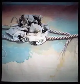 In the 1970s, Sher built a reputation as a printmaker and painter with complex prints and mixed-media works noted for their technical virtuosity, rich surfaces, dynamic compositions and sense of light.[17][18][19] She drew particular attention (and a San Francisco Art Festival award) for her "Rope" series, a largely abstract body of work that explored the formal and expressive possibilities of rope and incorporated photography, etching, serigraphy, collage, gestural drawing and painting, and sculptural elements.[20][19][21][22] Artweek wrote that she "transform[ed] a common object and its idiomatic associations into evocative visual metaphor."[20][23]