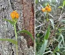 Ellianthus aurantiacus is an orchid (family Orchidaceae) native from Costa Rica to Peru. It is unique among orchids in being a shrub with repeated orders of branching.[1] The plant gets about three feet (0.9 meters) in height and not quite as wide.