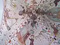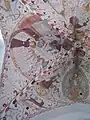 The most comprehensive wallpainting work was in fact carried out by the Elmelunde Master presenting a variety of scenes from the story of the Creation and the New Testament but also with illustrations of everyday activities such as ploughing and hunting. Between the paintings, margins with frills depicting flowers, plants and other ornaments can be seen. The figures all have sleepy faces, a characteristic of the Elmelund Master. Colours include black, ochre, caput mortuum, and cinnabar which has now faded to verdigris.[3]