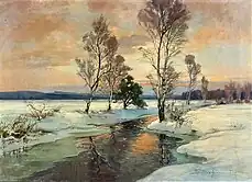 At the beginning of the 20th century, experts took up the former ideas again. There were plans to build a large shipping canal that would connect the Elbe with the Oder via the Schwarze Elster and the Spree. This was intended for cargo ships of up to 1000 tons, a length of 80 meters, a width of 9.2 meters, and a draft of 1.75 to 2.00 meters and above. The variants under consideration were to include sections of the Elsterwerda-Grödel raft canal and the Schraden area. Although a canal construction office was established in January 1928 in Senftenberg, whose lignite mining district would have benefited from the canal the most, the construction of the navigation route ultimately did not materialize and the projects did not get beyond the planning stage until World War II.[20][21]