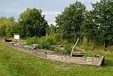 Reconstruction work on the sluice in Prösen in 1993 aimed to provide a historical perspective on the canal's history. The wooden sluice gates, which had long been absent, were rebuilt as part of this effort. The sluice keeper's house in Prösen, which had been demolished in 1954 due to its deteriorating condition, used to stand nearby. Today, there is a gastronomic facility at its original location. In 2001, a replica of the local sluicekeeper’s house was constructed not far from the sluice.[36] An exhibition on the history of the "Floßkanal," (raft canal) featuring two replicas of the barges that operated on the canal and informative display boards, was also present in the vicinity for an extended period.[37][38]