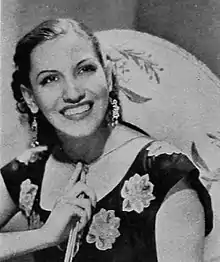 She made her debut in Mexican films singing "Noche de ronda" in ¡Esos hombres! (released in 1937). Manuel Reachi, an assistant to Paramount Pictures producer Arthur Hornblow Jr., discovered her singing over XEW and took her to Hollywood to appear in the musical Tropic Holiday,[7] where she sang songs by Lara and played Tito Guízar's sister. She was then chosen to play a young Apache woman named Yakima in John Ford's Stagecoach. In March 1938, NBC signed her as a sustaining artist and gave her her own 15-minute program every Thursday with Frank Hodek's orchestra.[8] Her success on the West Coast led her to New York City, where she performed at the popular nightclub La Martinique and began a series of recordings for the Decca label. In 1941 she became the headline act at the Copacabana nightclub in Manhattan with dancer Patricia Bowman.[9] After New York, she performed in Miami at the Miami-Biltmore Hotel with Maximillian Bergere's orchestra.