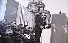 In the autumn of 1943 he joined the Communist Party of Macedonia and became a member of an informal group called the "Action national-liberation Committee" (ANOK) within the party, which agitated for the independence of a united Macedonia.[1][2][5] In April 1944 he became a member of the Initiative committee for the organization of the Antifascist Assembly of the National Liberation of Macedonia (ASNOM). In June, Čučkov, along with Metodija Andonov - Čento and Kiril Petrušev met with Josip Broz Tito on the island of Vis for consultations due to their activity.[1][2] He participated during the first session of ASNOM, and was elected as second vice presidents of the Presidium of ASNOM. On August 14, the Presidium of ASNOM elected him as a member of the commission for determining the offenses of the occupiers and their servants. Čučkov was also elected as a commissioner for agriculture of the National Committee for the Liberation of Yugoslavia. After the formation of the Provisional Government of the Democratic Federal Yugoslavia he became the minister for Macedonia. However, due to his agitation for an independent and united Macedonia, his stances were deemed nationalist, separatist and anti-Yugoslav, and he was removed from the post.[1][2][6]