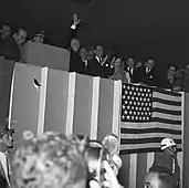 The plot was officially occupied by a trailer in 1960, and U.S. President Dwight D. Eisenhower laid the foundation stone of the Chancellery during his visit to the still-under-construction city on February 23, 1960, shortly before its inauguration.[2]