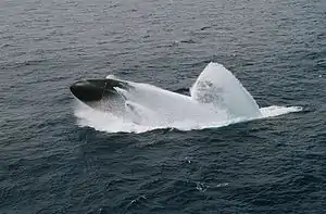 An emergency main ballast tank blow is a procedure used aboard a submarine that forces high-pressure air into its main ballast tanks. The high-pressure air forces ballast water from the tanks, quickly lightening the ship so it can rapidly rise to the surface.
