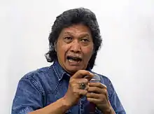 Muhammad Ainun Nadjib (born 27 May 1953), best known as Emha Ainun Nadjib or Cak Nun/Mbah Nun, is an Indonesian poet, essayist, kyai, ulama, and humanist. Born in Jombang, East Java, Nadjib began writing poetry while living in Yogyakarta, publishing his first collection in 1976. He became one of the city's predominant poets by the late 1980s, and by then had also began writing essays. He is the leader of the Kiai Kanjeng group, which stages dramas and musical performances on religious themes.