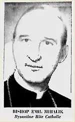 Emil John Mihalik (February 7, 1920 – January 27, 1984) was the first Eparch of the Byzantine Catholic Eparchy of Parma, Ohio.[1] His appointment occurred simultaneously with the erection of the see. At that time, his jurisdiction encompassed central and western Ohio, Arizona, California, Colorado, Indiana, Michigan, Illinois, Wisconsin, Minnesota, Missouri, Iowa, Kansas, Montana, Nevada, New Mexico, Nebraska, North Dakota, South Dakota, Oregon, Utah, Washington, Wyoming, Alaska and Hawaii.[1][2][3][4]